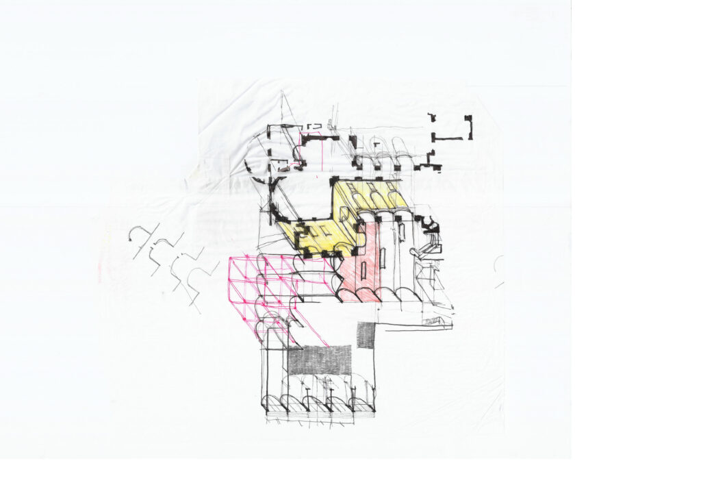 The programme unfolds within a realm of brick vaults extracted from the very city in which it stands. It includes educative and reparative workshops, a large church assembly hall, and material storage facilities, all emphasising the reuse of salvaged and redundant materials sourced from surrounding areas. Redundant materials become the central subject of the project, shifting from waste to resource. The site operates as both a hub and a form of spolia — a place where fragments of the city are gathered, catalogued, and reintroduced — enticing the city to repair itself through incremental, smaller-scale acts of intervention.